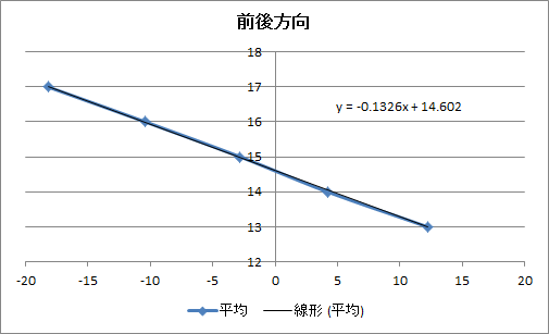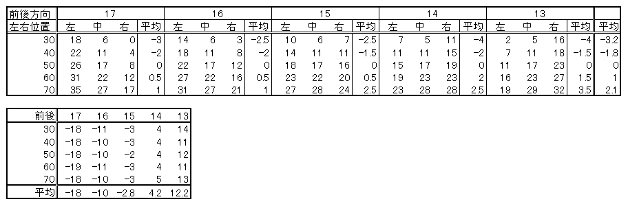 上の表では前後方向それぞれの位置での平均とすべての位置での平均を求めています。