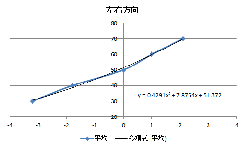 左右方向の位置は中を基準に左右でどれだけずれたかを求め、その平均を求めます。