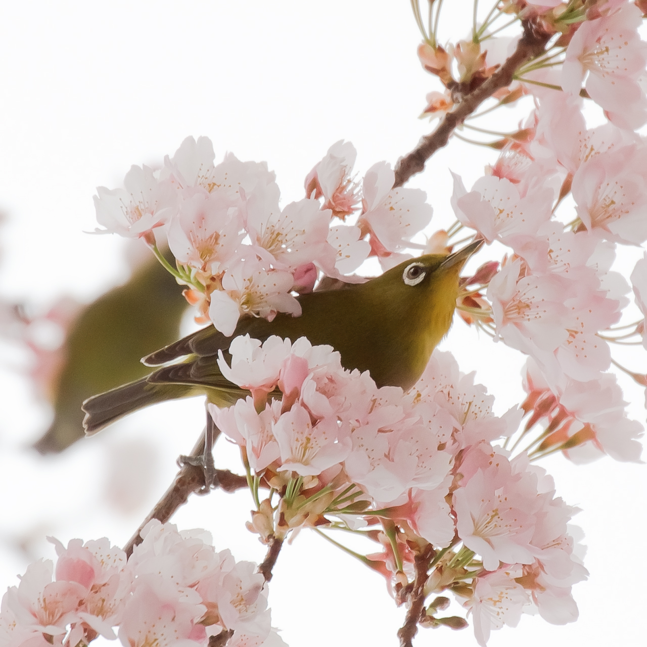 ヒガンザクラとメジロ